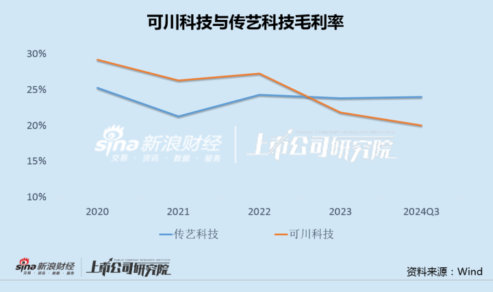 2019年以来,可川科技毛利率持续下滑,盈利能力表现明显不及传艺科技等可比公司。2023年,可川科技营收和归母净利润同比分别下降20.11%和39.85%,出现了罕见的双下滑;2024年前三季度,净利同比继续下降24.30%,未见止跌迹象。